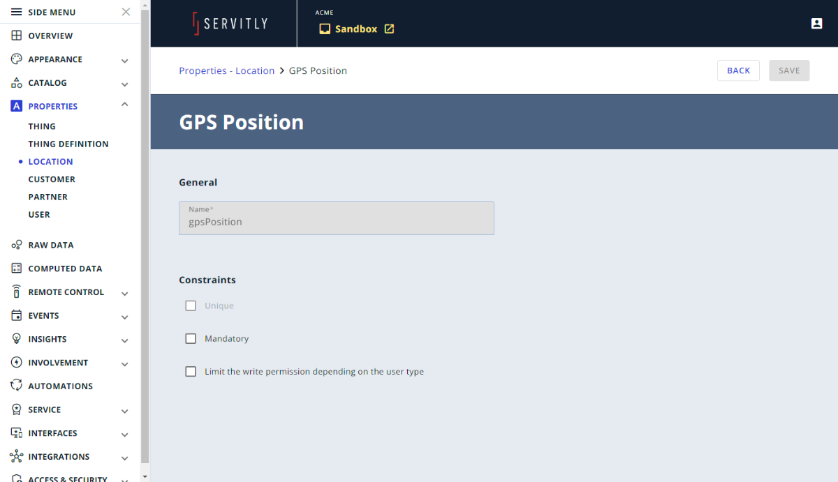 - Limit write permissions depending on the user-type: you can limit the user-types can write the property value. If a user which is not authorized to the property, try to write it, the backend reports an error. Properties that are not writable by a user type are also not visible on the edit page of that object in the DPS application.