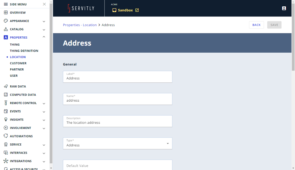Here, you can define properties available to all Locations. The below list, displays the default properties and the additional properties for all locations.