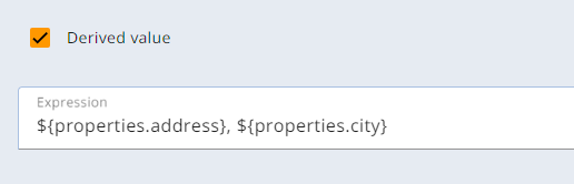 By selecting "Derived value", you can specify a mask which is kept updated according to the presence of placeholders. Within the placeholders, you can use any location property, and also any customer property.