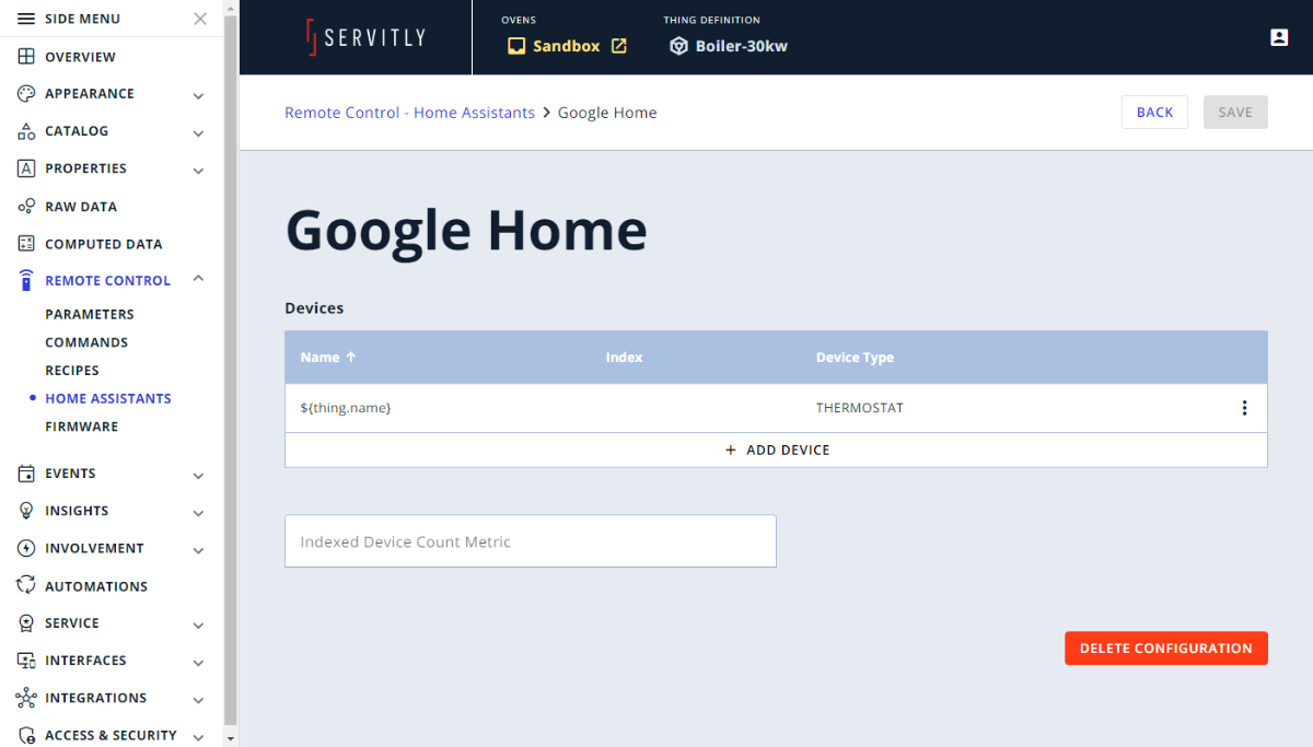 For a complete list of available devices and their description, refer to the Google Home documentation. - Device Name Metric: the metric whose value can be used as device name.