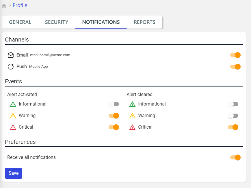 The user profile panel used to manage the notification preferences has been updated by reducing the number of events to notify, and improving the channel selection.