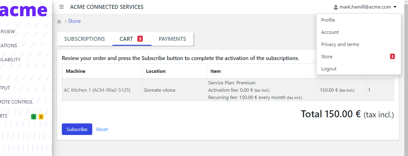 The Store page will be the new entry point where users can manage subscriptions, payments, and, in the future, purchase spare-parts and consumables