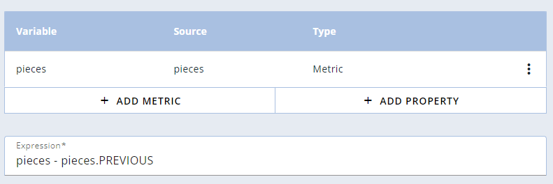 When configuring a Derived Metric with continuous computation, for each selected input metric, within the expressions, you can also use the previous value in order to compute differences on metric values.